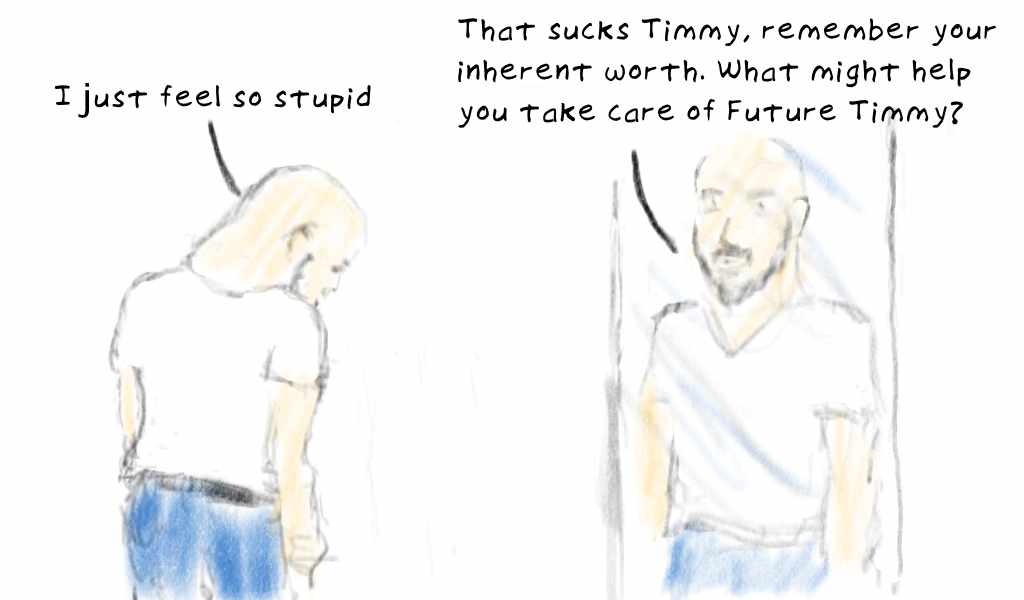 Recentlly I heard Mark Brackett on Brené Brown’s podcast. He touched an an interesting idea. He said a study was done that showed people are kinder in how they speak to themselves when they speak in the third person.