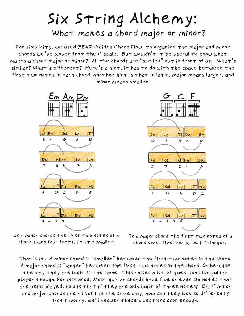 The worksheet I included today is talking about the difference between major and minor chords. (It’s just one note!) It ended up being an explanation of how chords are built instead of a musical idea someone could really try out. But why not just play around with changing a chord from major to minor? See what happens. A classic way the Beatles (among many others) make this change is this: